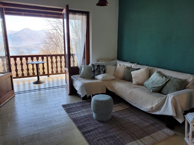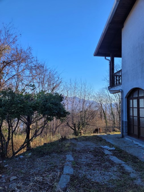 - Lago Maggiore - Alture Stresa in bella posizione immersa nel verde, VILLETTA vista lago con una disposizione ben articolata, attraverso il vialetto di ingresso si accede ad un gran salone con uscita su terrazzo, cucina abitale, due camere da letto, studio/camera singola bagno, scala interna che accede al piano sottostante di pari metratura con uscita su altro giardino, con grande salone-taverna, un locale e bagno.- Possibilità di suddivisione della villa in due appartamenti indipendenti separata Accesso carrabile con due posti auto.-